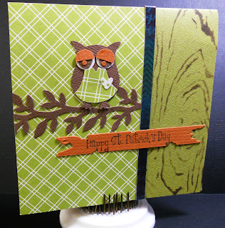 the little owl punch used once again, with some wood grain stenciling . Patterned paper. some punches and dies and there you go!